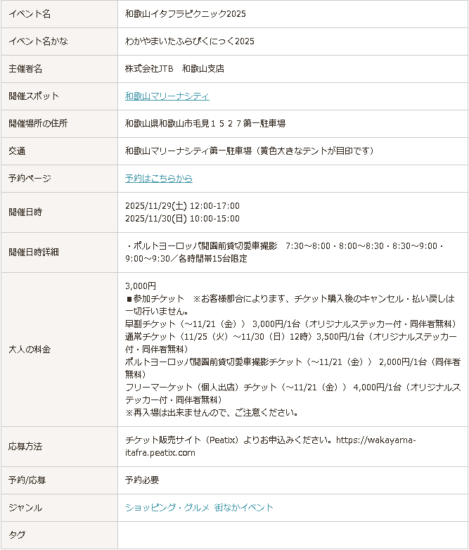 開催場所:和歌山県和歌山市毛見1527第一駐車場